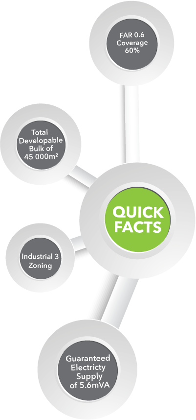 Phase I of the precinct, measuring approximately 9 hectares, will house Unilever Homecare. Phase II offers users customised developments ranging in size between 3 000m² - 20 000m² under roof.